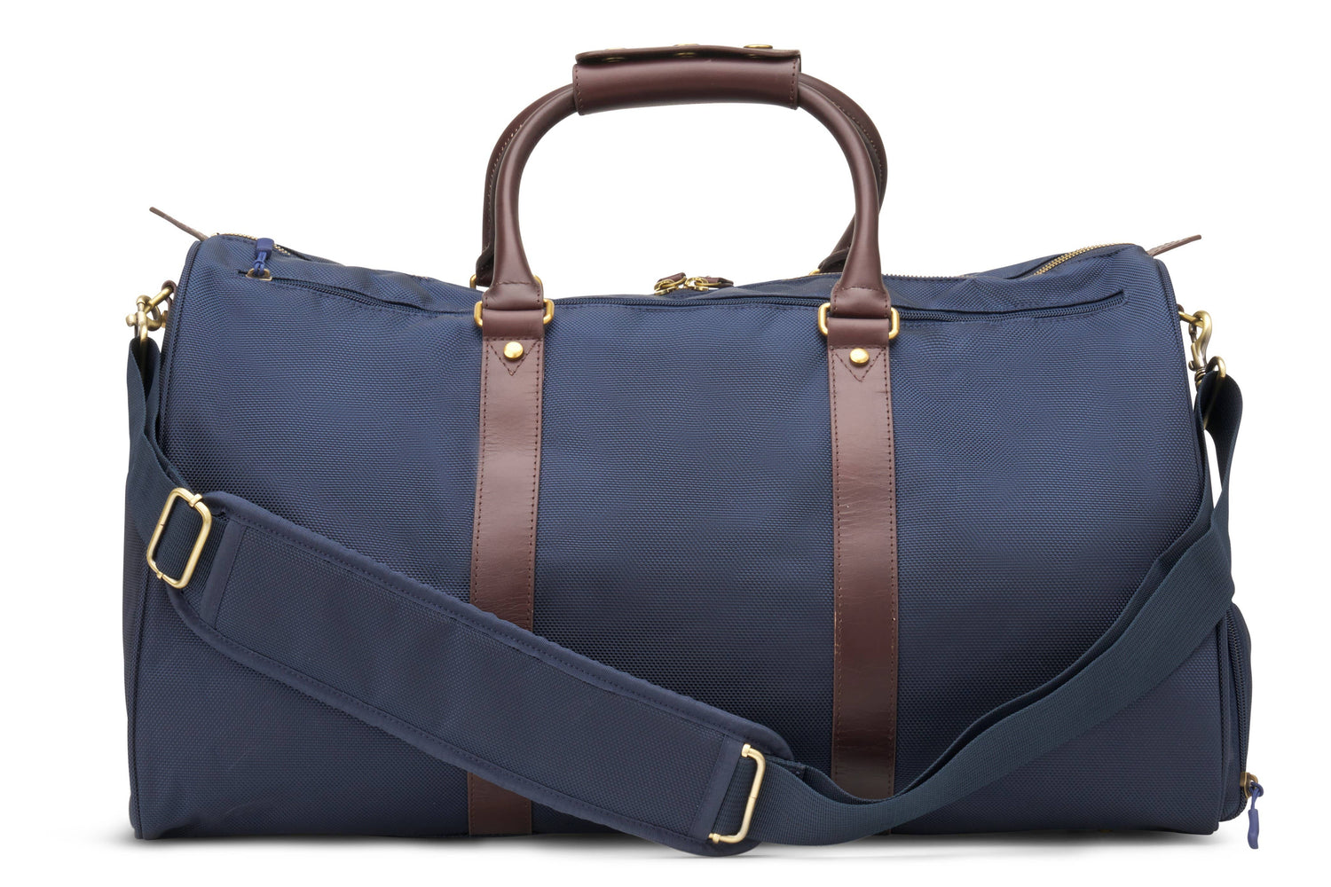 "Alex" Navy Nylon and Leather Duffle Bag (Personalizable)