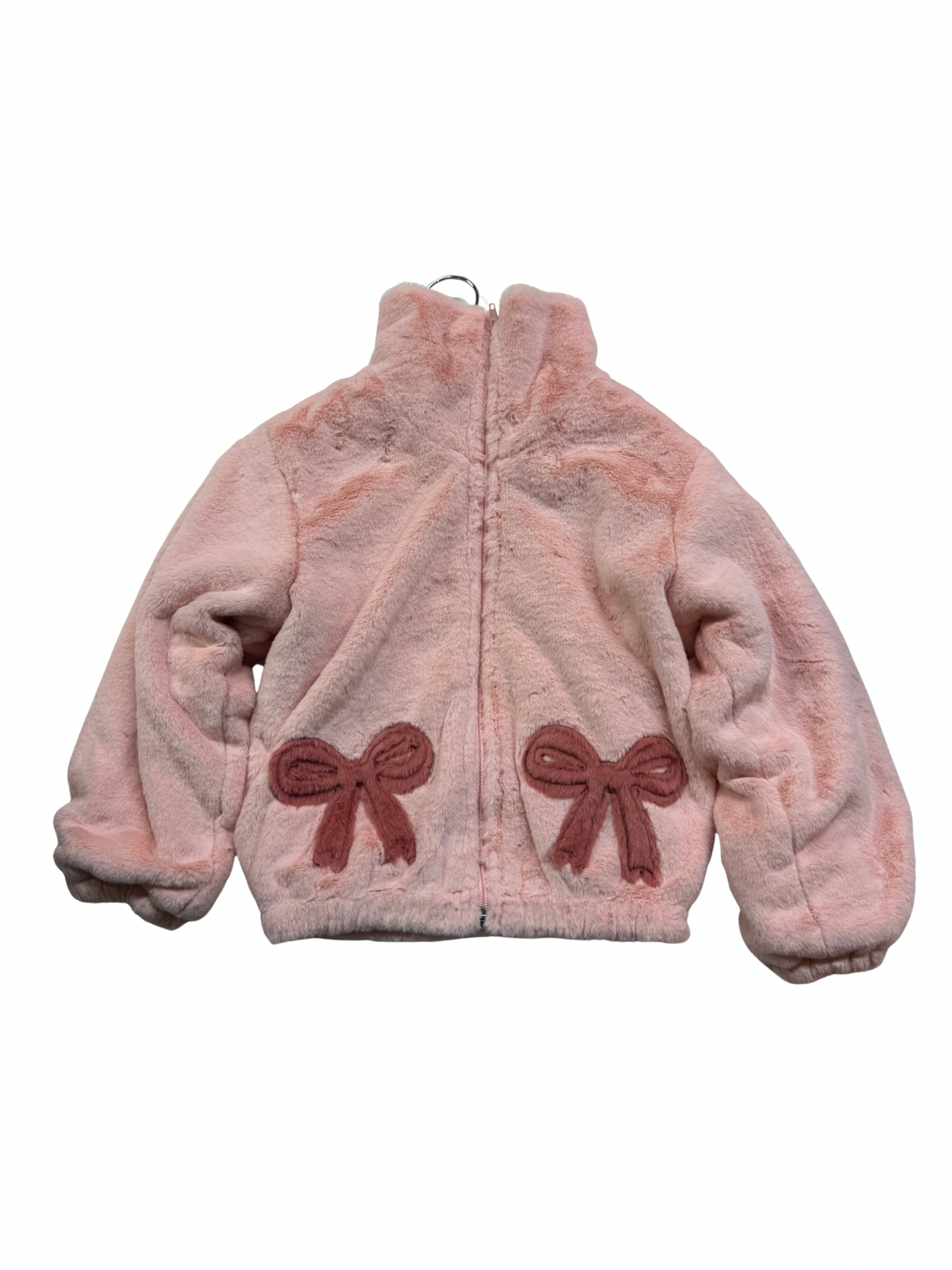 The Coquette Bows Faux Fur Tahoe Jacket for babies combines cozy warmth with stylish design, featuring plush faux fur that provides soft insulation against chilly weather. Its gentle fabric ensures comfort for delicate skin while adding a fashionable touch to your little one's wardrobe. Ideal for keeping babies warm during outdoor activities, this jacket balances practicality with an elegant look.