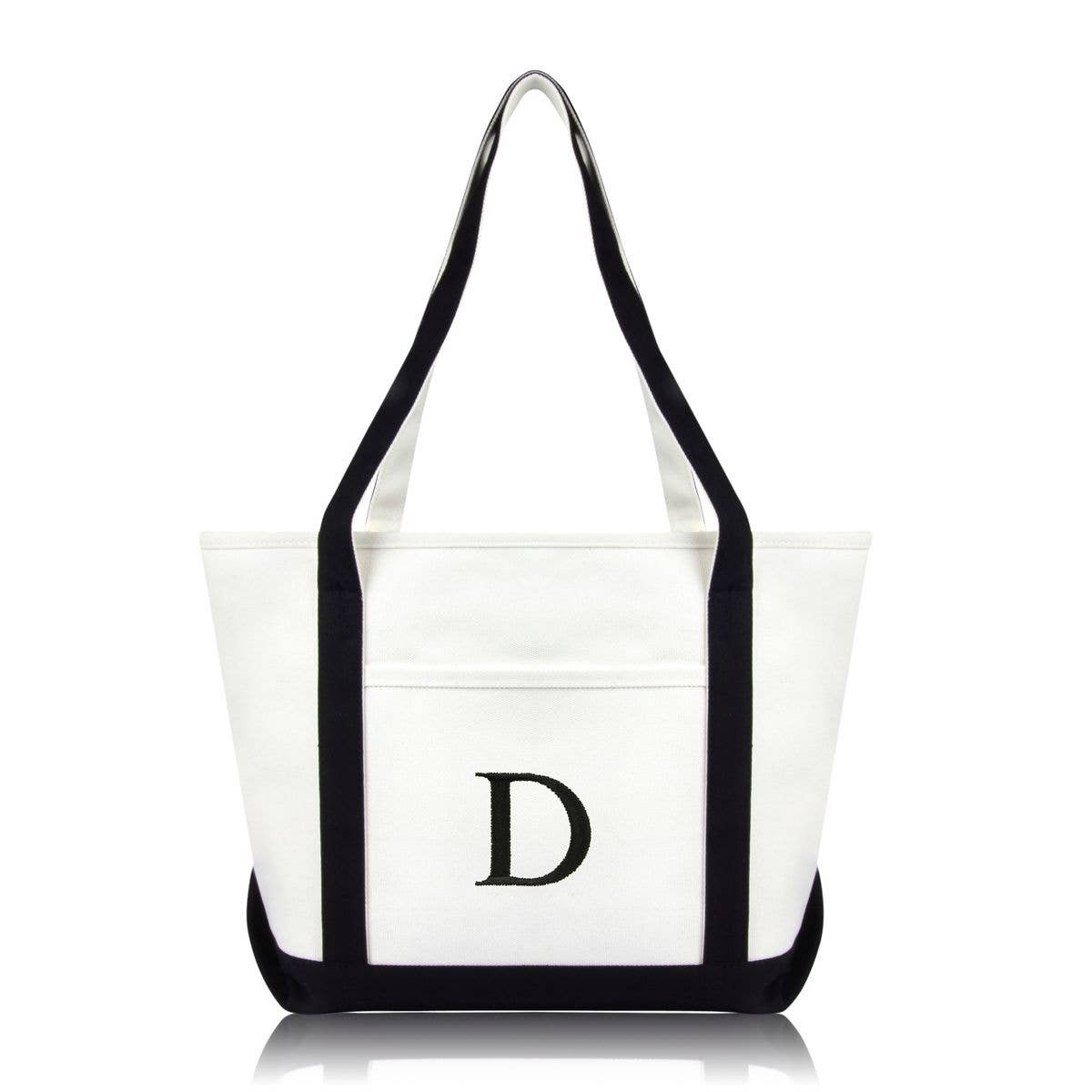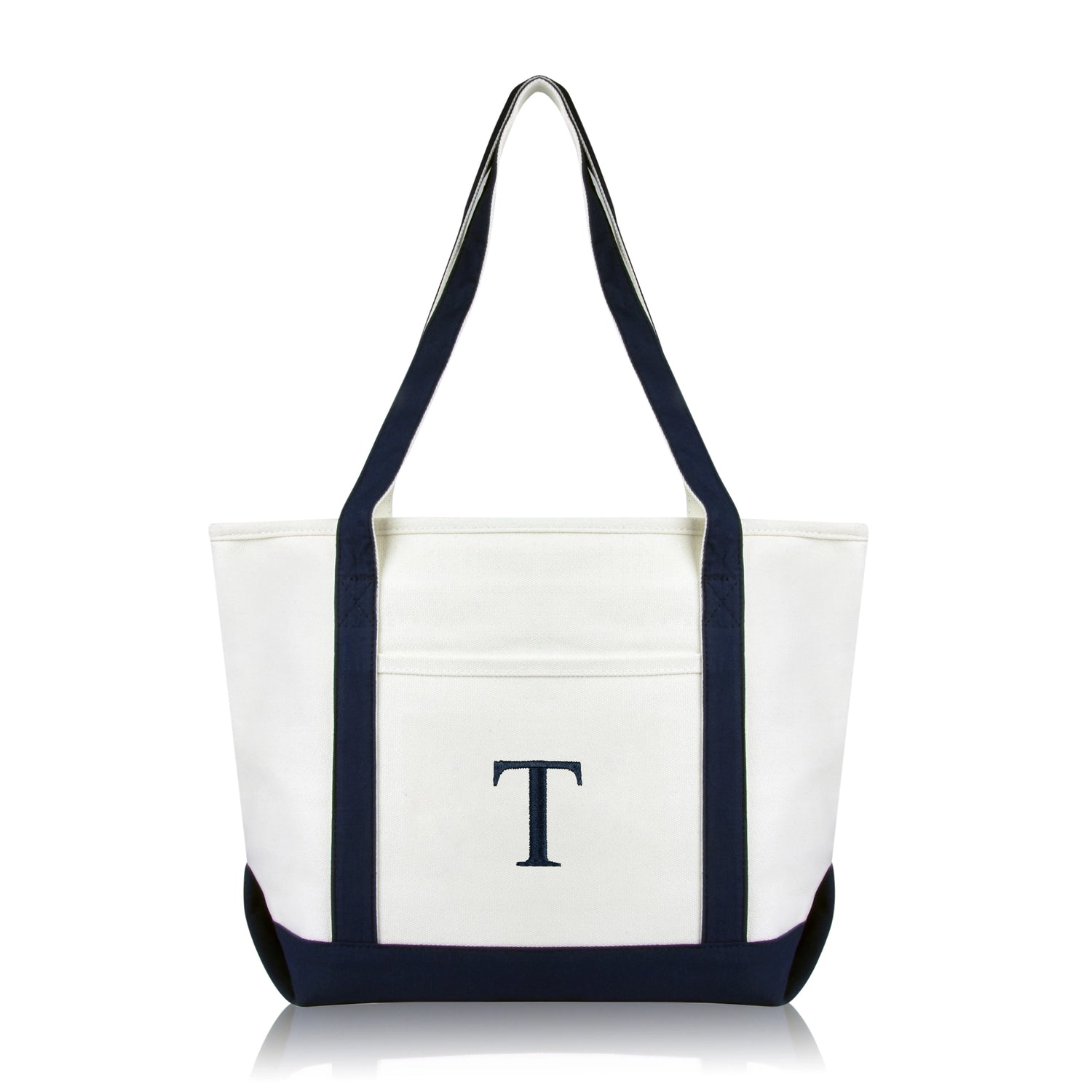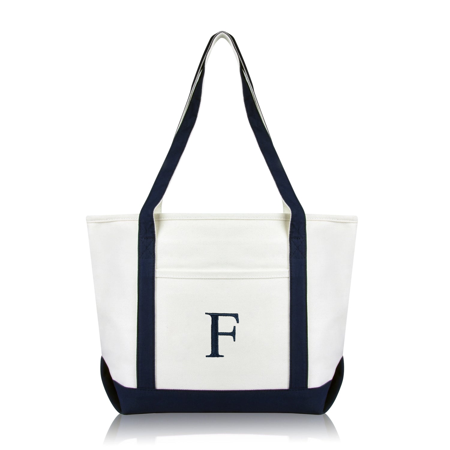 Sewn with premium threading, each tote has a different color theme with a complementing letter color. Subtle, yet elegant and gives an edge with the embellished personalization.