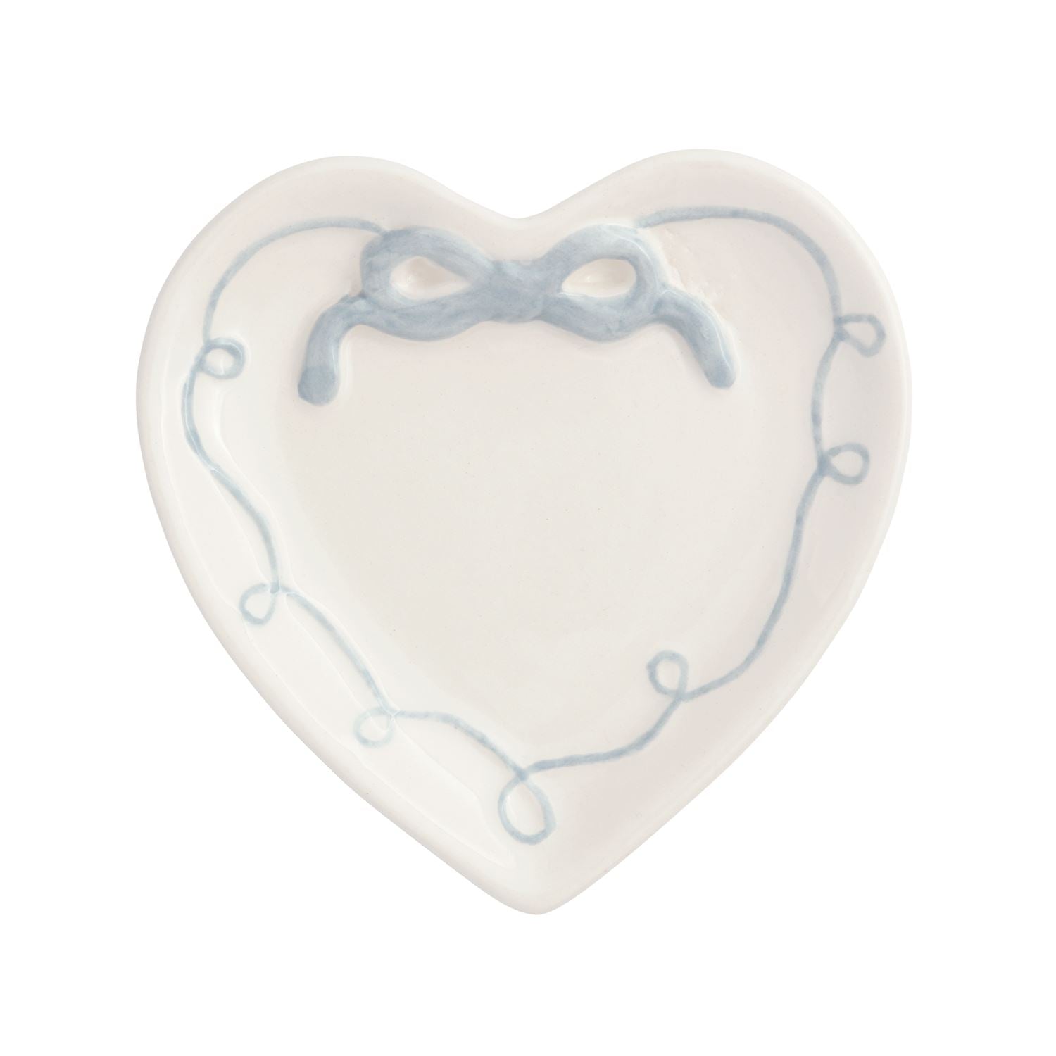 Ceramic ring dish features hand-painted, dimensional ceramic bow and ribbon detail around rim.