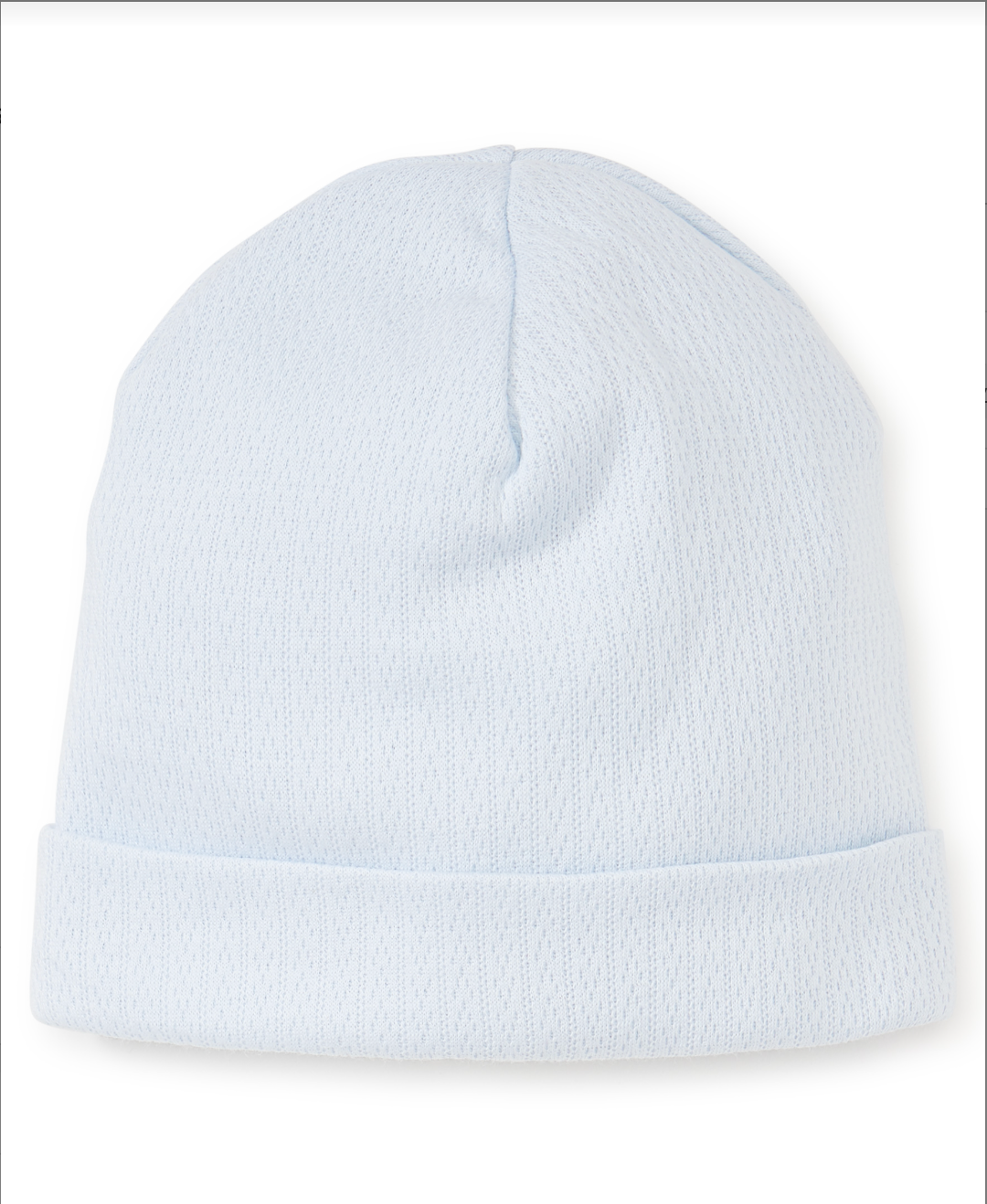This delicately crafted Kissy Pointelle Hat features an intricate breathable pattern ideal for sensitive skin in white, light blue, or pink. Designed specifically for little ones, it offers a perfect balance of comfort and style with a snug yet gentle fit. The premium materials ensure durability while maintaining softness against your baby's delicate scalp.
