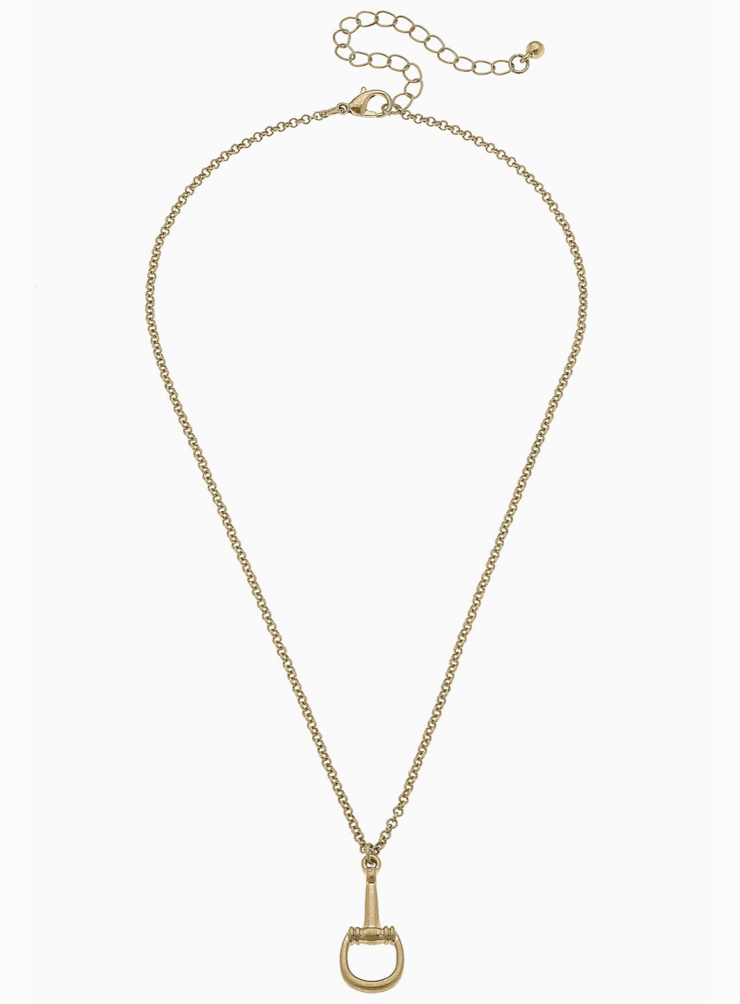 Lou Ann Linked Horsebit Pendant Necklace in Shiny Gold