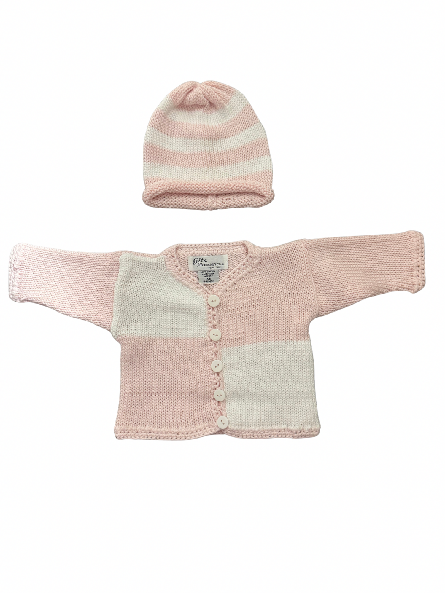 Keep your baby cozy and stylish with this Pink and White Blocked Sweater and Hat set. Crafted for comfort, the soft fabric gently warms delicate skin, while the color-block design adds a modern touch. Perfect for layering in cooler weather, this set provides both warmth and an easy, coordinated look for your little one. Ideal for everyday wear or special outings, it combines practicality with subtle elegance.